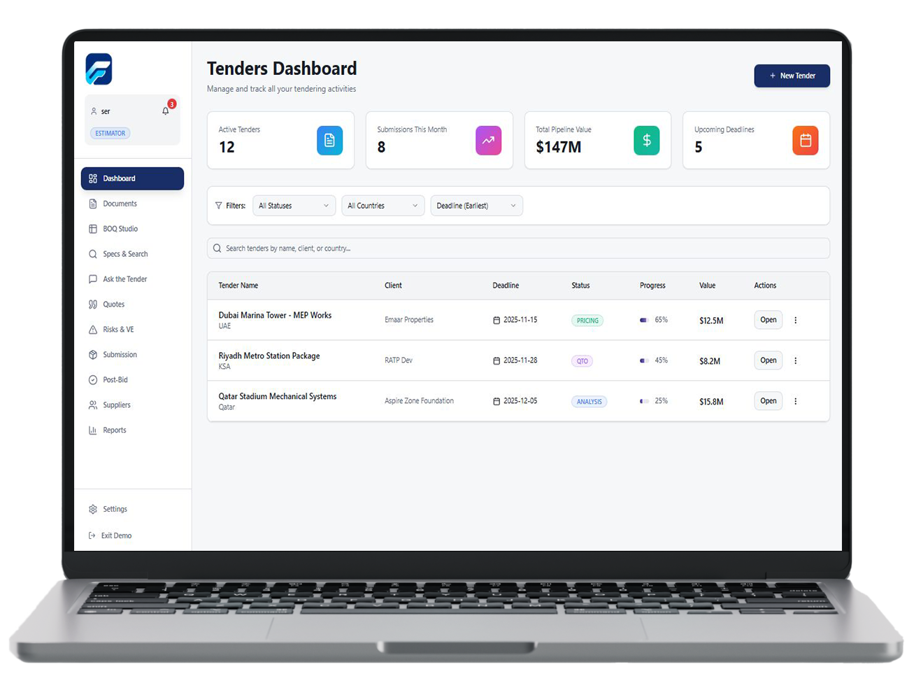 BidFlow is designed as an AI-native tendering co-pilot rather than just a digital filing cabinet. Autonomous AI agents work in parallel across different steps of the process (documents, BOQ, quotes, risks) to reduce bottlenecks and keep estimators focused on high-value decisions.